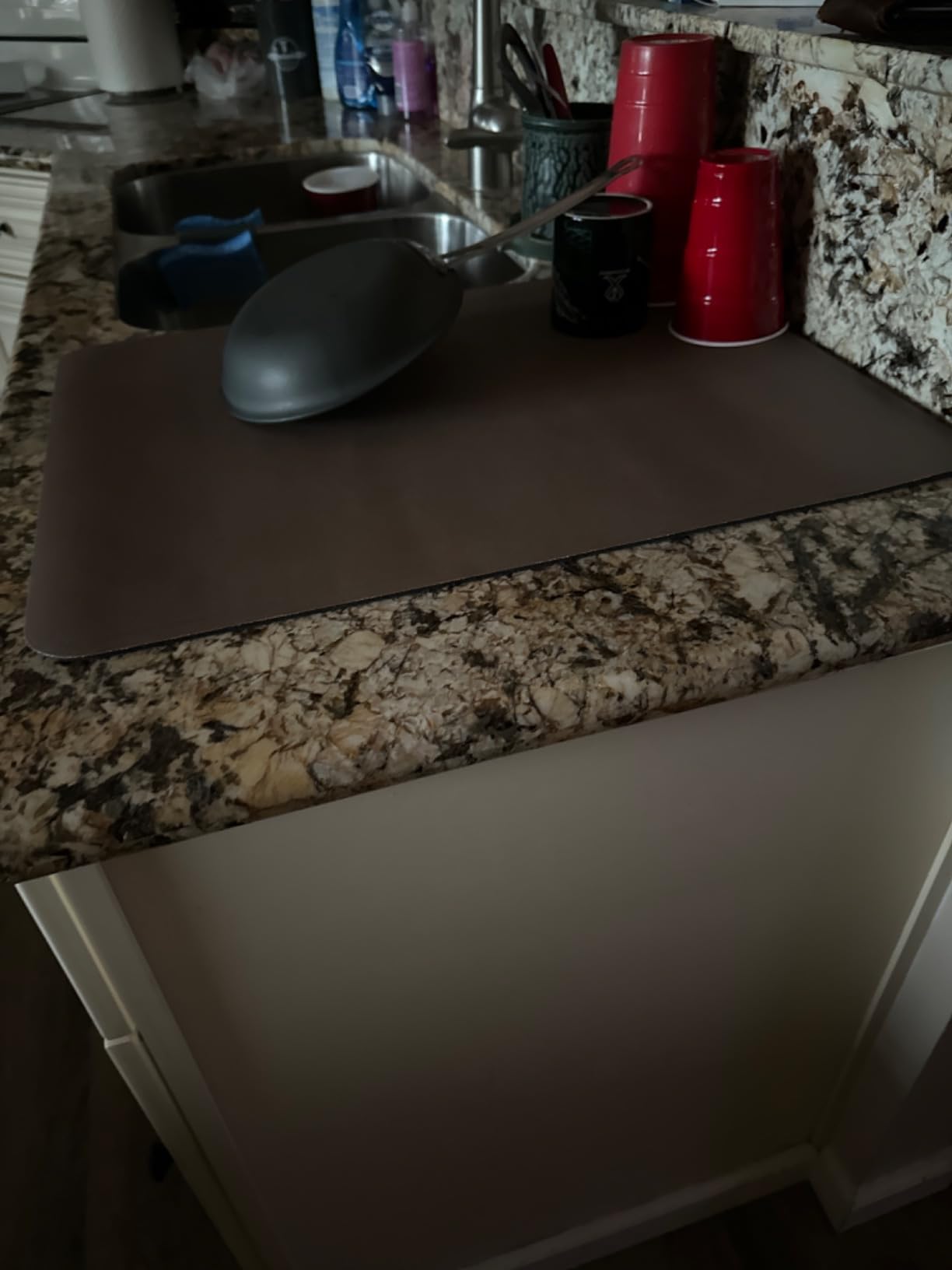 Extendelo sobre la mesada donde más se moja (frente al fregadero, bajo la cafetera o la airfryer).