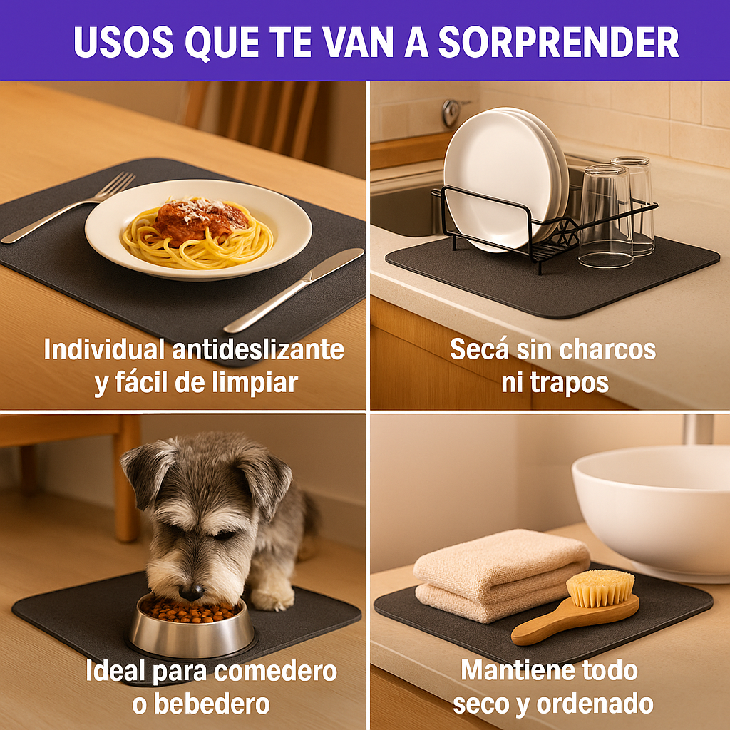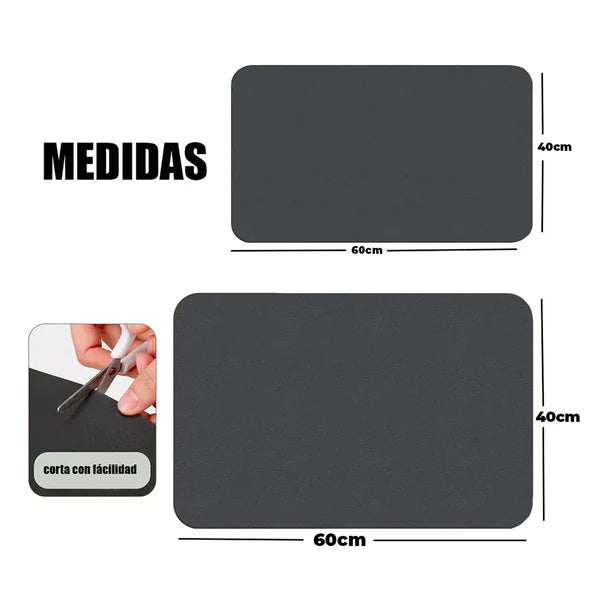 Este tapete absorbe el agua, no se mueve y deja todo limpio sin que hagas nada más.